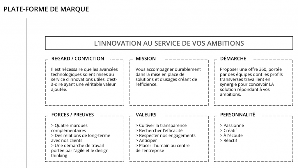 > livraison d’une plate-forme de marque, d’un manifesto et d’une présentation de l’offre du groupe